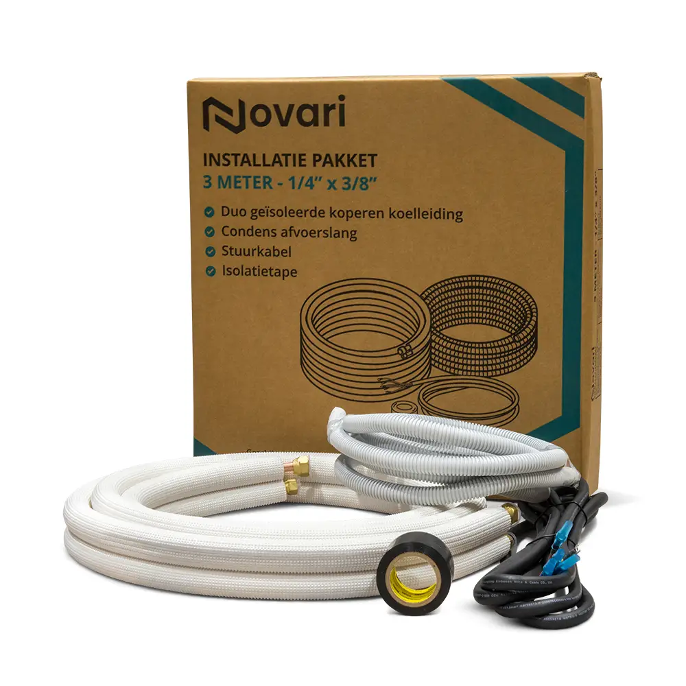 - Dubbele koperen geïsoleerde leidingset met flare koppelingen van 3 meter.