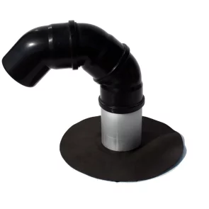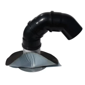 Door de bevestiginsflens die onder de dakbedekking is bevestigd, kan de dakdoorvoer vast worden gemonteerd op het platte dak. Bijgeleverd worden drie 45° PP bochten. Deze drie bochten vormen een grote waterdichte bocht. De bochten worden d.m.v. een lipring over elkaar geschoven.